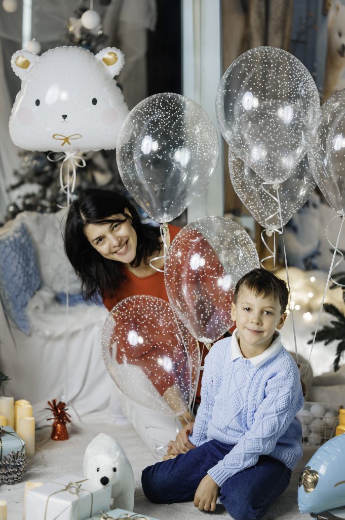 Transparente Heliumballons mit weißem Konfetti in Schnee-Optik – je 3,50 €